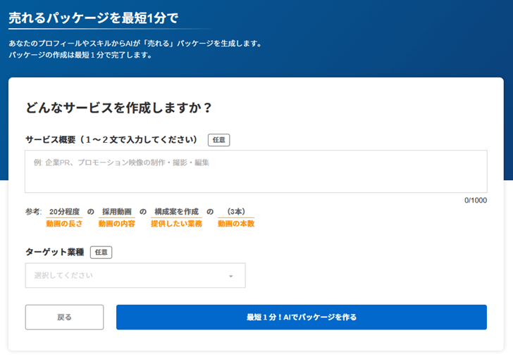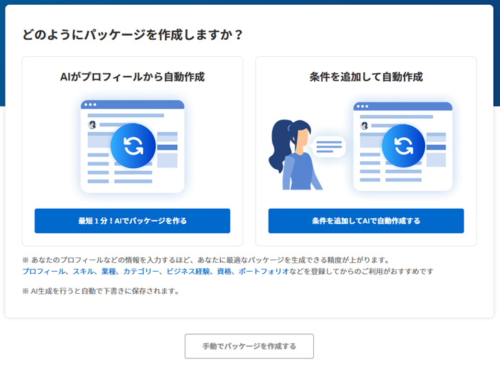 *あなたのプロフィールやスキルから「AI」がパッケージを自動作成します