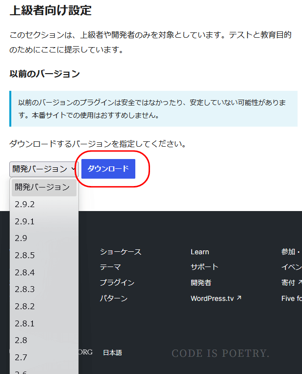 WordPressプラグインの古いバージョンを探してダウンロードする方法です。